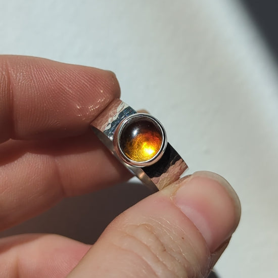 Anillo hecho a mano con plata de ley 925 y un ámbar mexicano de Chiapas de calidad top.