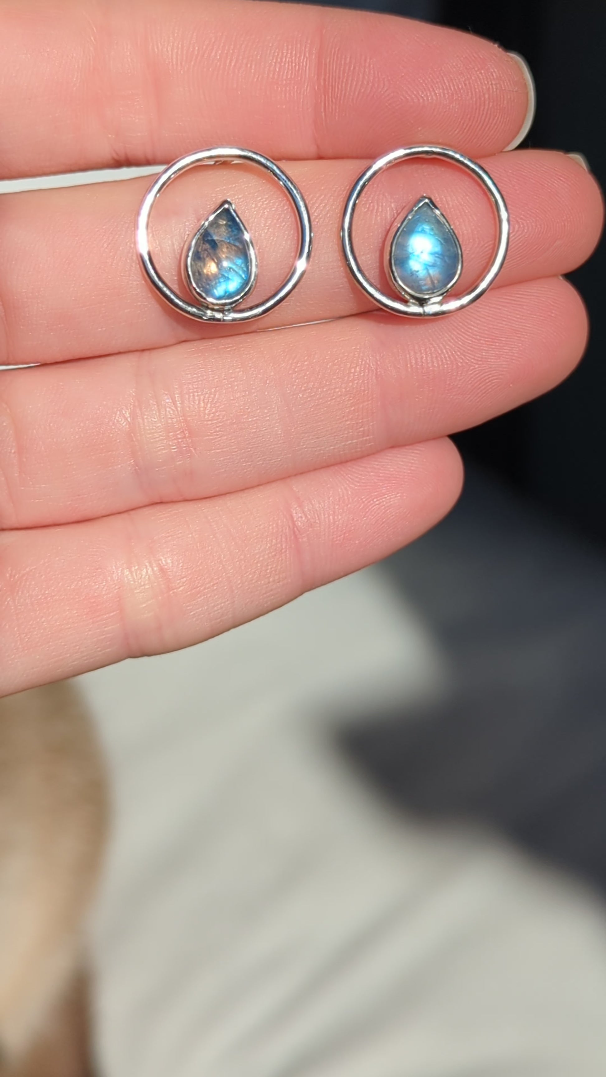 Estos pendientes están hechos a mano con plata de ley 925 y piedras luna.